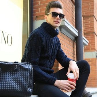 - Пуловер. Класически вариант за красиви мъже с различно телосложение и височина. Това е плетена дреха с висока яка. Продуктите от вълна са особено популярни.