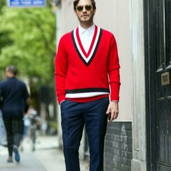 - Плетена жилетка. Елегантен вариант за високи и стройни красиви мъже. Чудесно за бизнес стил. Като правило мъжки жилетки са проектирани в студени цветове.