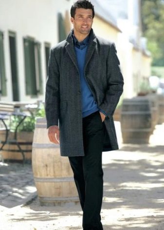- Палто. Тази опция изглежда строга и елегантна. Мъжете са склонни да предпочитат неща в тъмни цветове. Класическите палта със свободна кройка се отличават със специално усъвършенстване. Този елемент от връхни дрехи е чудесен за есента и топлата зима. Въпреки това е по -добре да не го носите в дъждовно време.