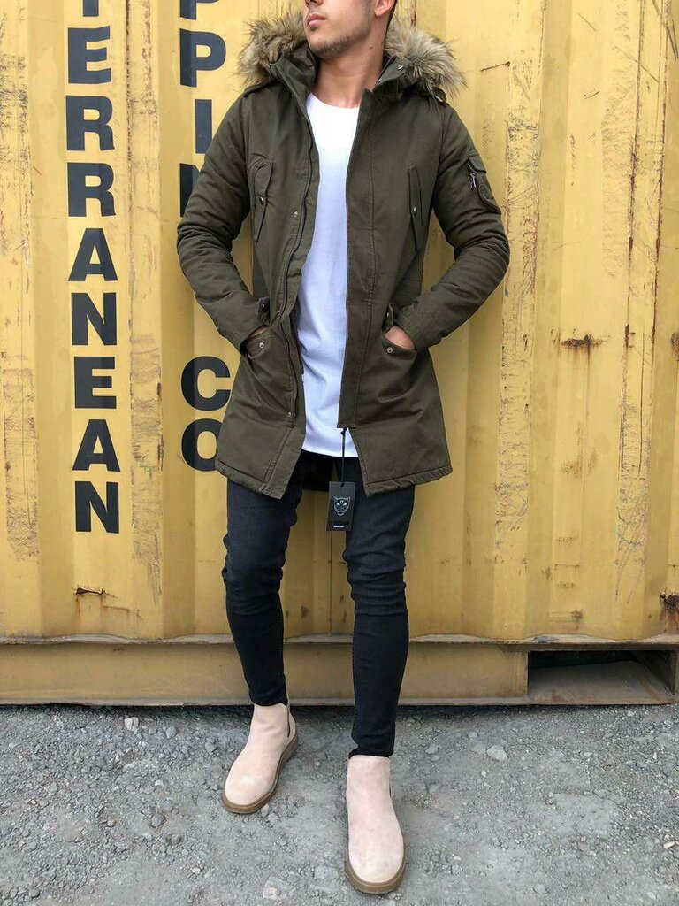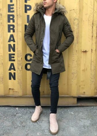 - Парка. Практично дълго яке (до средата на бедрото). Мъжкият парк е от значение за жителите на региони, които се характеризират с обилни валежи. Нещото перфектно предпазва от сняг, дъжд и пориви на вятъра. Също така паркът е оборудван с много джобове.