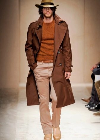 - Плащ. Чудесен вариант за бизнес мъже. Вграденият модел изглежда особено стилен и оригинален. Мъжки дъждобран върви добре с шапка и скъпи кожени обувки.