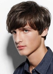 В този случай задната част на главата и слепоочията са обръснати чисто, а бретонът е оставен дълъг. За разлика от това, понякога няколко кичура бретон са боядисани по -ярко от основния тон на косата. Стилната прическа придава мъжественост на собственика си. Именно тази прическа стилистите вземат за основа, когато младите хора изпълняват шарки на главите си: райета, змии, различни фигури и йероглифи.