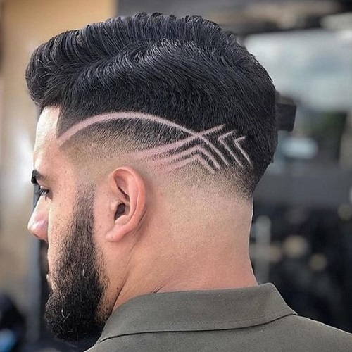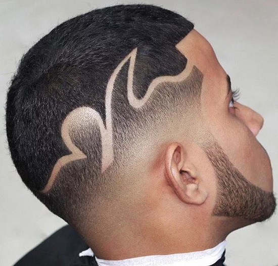 - късо подстриганата коса се комбинира с обръснати ивици, форми и символи;