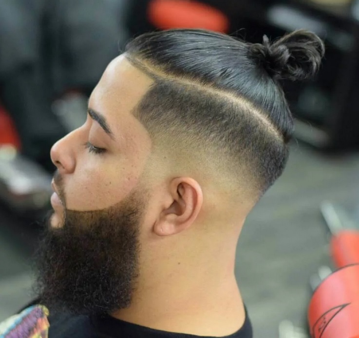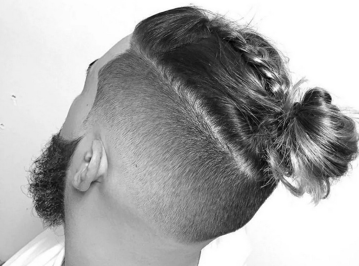 Тази новост на нашето време сега е супер популярна сред мъжете. Тази прическа подхожда на любителите на дълги прически. Интересна комбинация от дълга коса с обръснати слепоочия, които за удобство са събрани на темето на главата на опашка или небрежен кок, който създава стилен и креативен образ.