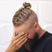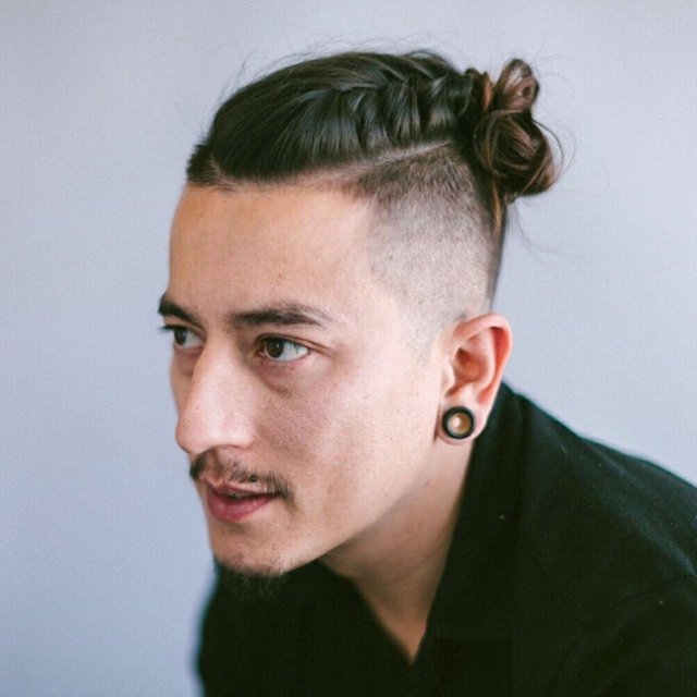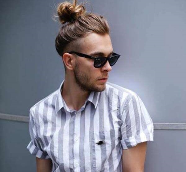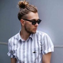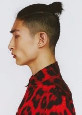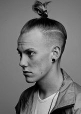 - Горен възел. През последните години тази прическа постоянно се държи сред водещите тенденции в мъжката мода. В този случай обръснатото уиски се комбинира с дълги къдрици. Топ възел може да се види на главите на световноизвестни звезди и на обикновени момчета, които мечтаят да изглеждат стилни и брутални. Доста често, за удобство, най -дългата коса на короната се събира на опашка или се усуква на свободен кок.