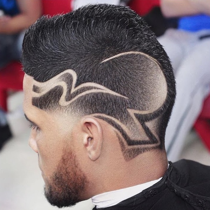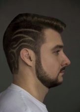 - С шарки. Тази опция е много популярна сред тийнейджъри и млади мъже. Още от самото име става ясно, че майсторът създава голямо разнообразие от шарки в района на храма.
