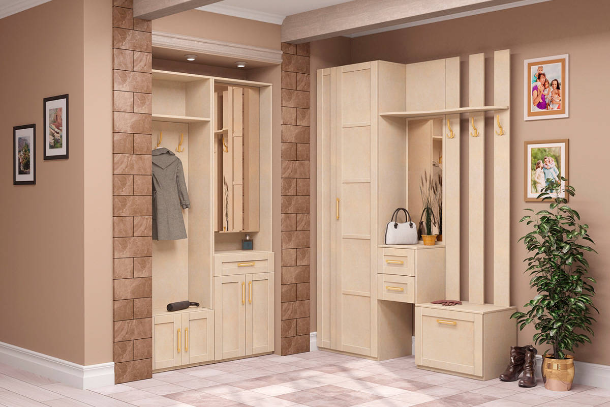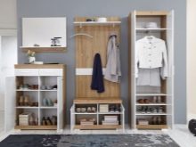 Често в продажба има модели с отворени и затворени системи за съхранение. Например, в допълнение към традиционния блок с куки и закачалка, в коридора има секции за обувки.