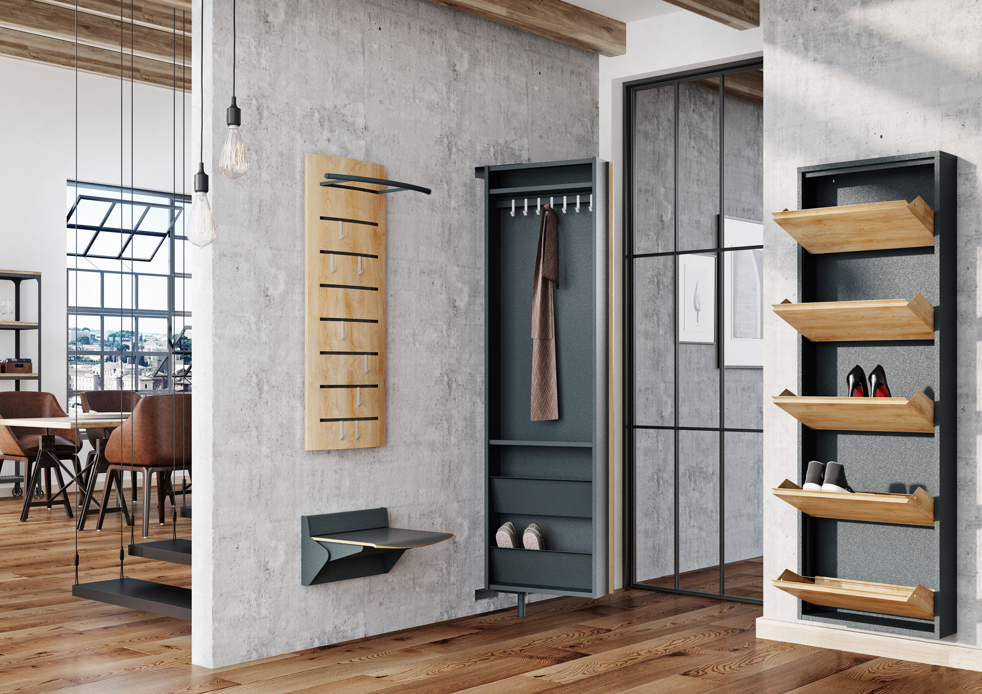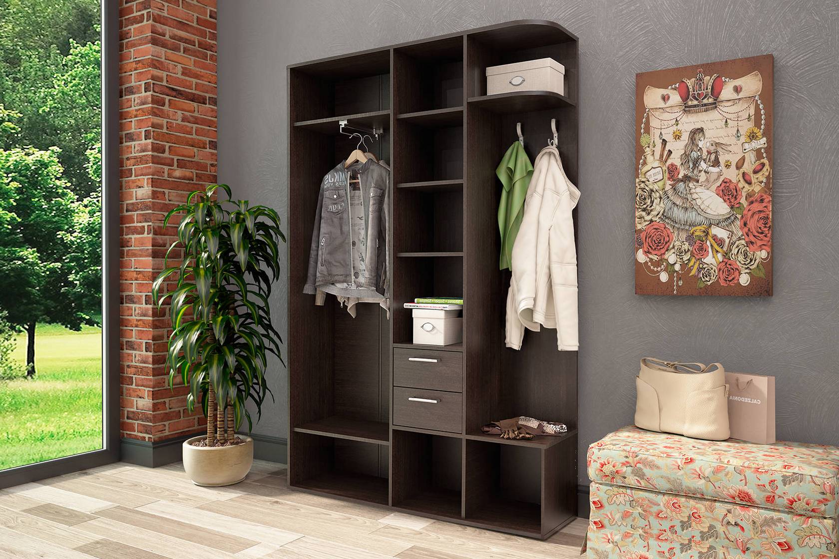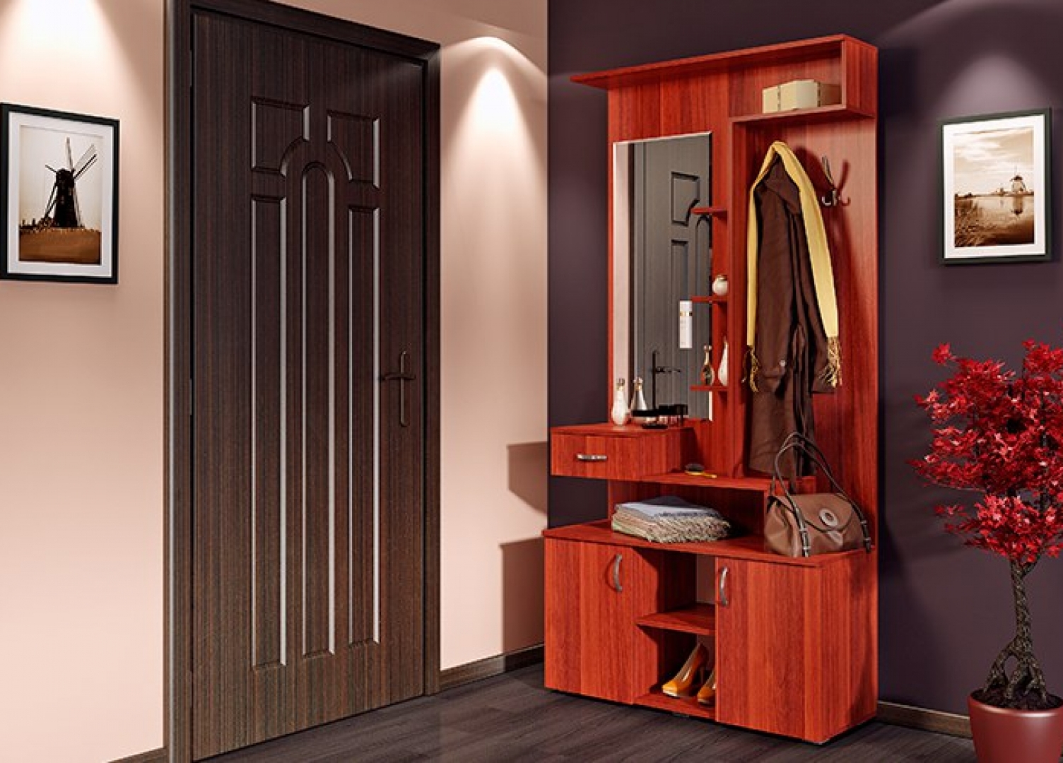 Такива мебели се използват за съхранение на връхни дрехи, шапки. Често е оборудван със специални отделения за обувки. Това е един вид организатор, поради което се поддържа ред в стаята.