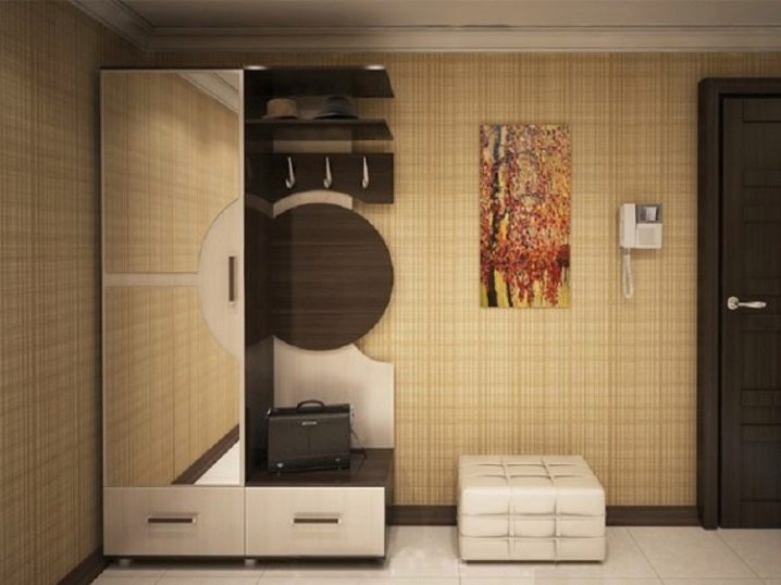 Коридорите с стелажи, украсени с тапицерия под формата на вратовръзка, изглеждат красиво в интериора. Такива мебели могат да бъдат светли, дървесни, тъмни, неутрални.