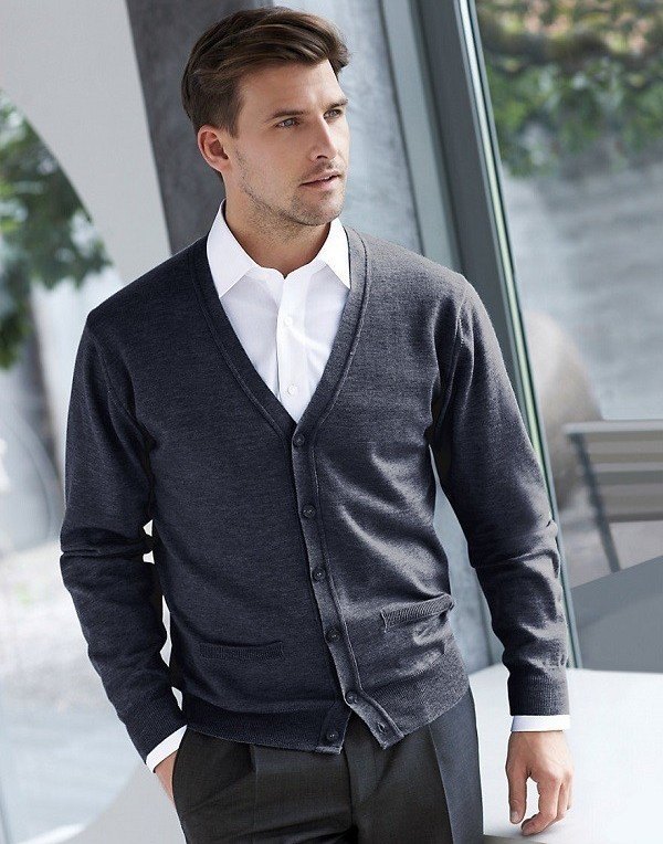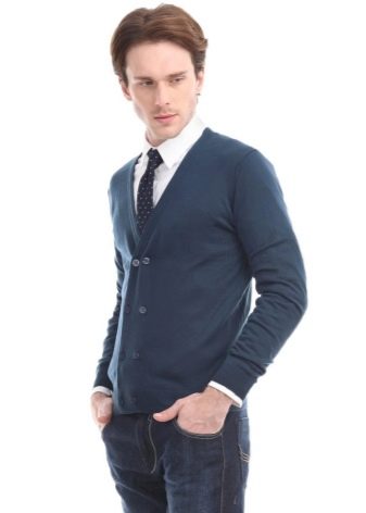 - Плетена жилетка. Може да замени яке по стилен начин. За официална обстановка те избират модели в класически черни и сиви нюанси. В ежедневието бяла риза може да се комбинира с жилетки в жълти, кафяви и дори сини тонове.