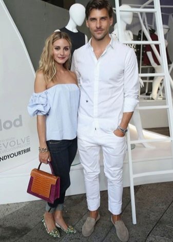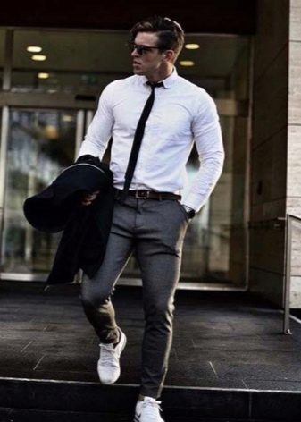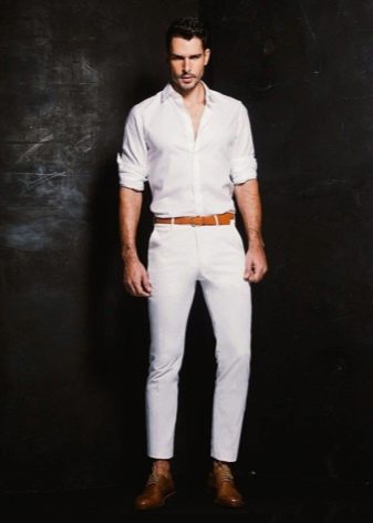 - Бели панталони. През лятото можете да комбинирате такъв артикул от гардероба с широка риза. Няколко горни копчета и маншети не трябва да се закопчават. Ръкавите могат да бъдат прибрани.