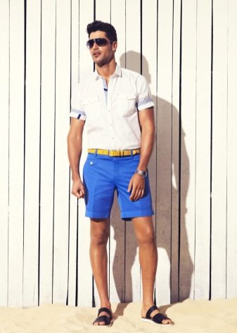 - Къси панталонки. Важно е те да са едноцветни. Тази двойка използва риза с къси ръкави. Освен това носете класически сандали.