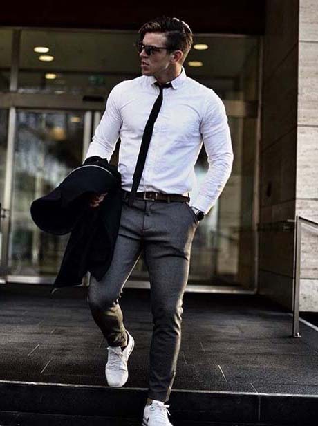 Доста модерно е да го носите под дънки с обувки, кецове или кецове. Белите ризи никога не излизат от мода.