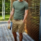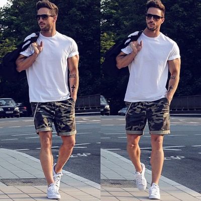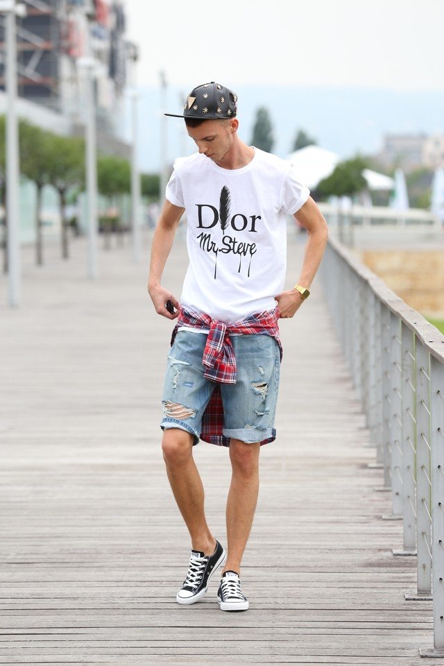 - Спортен вид на уличен стил с военни детайли - за атлетични и смели мъже. Обувките се избират според стила - бели леки кецове.