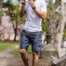 - Съкратените панталони от всеки стил подчертават фигурата, излагайки на показ всички нейни недостатъци, така че изборът трябва да се вземе на сериозно. Ако мъжът има пълни крака, струва си да вземете класически прави дънкови шорти, не стеснени и не широки. Ако прасците на един мъж изглеждат твърде тънки, за да се избегне дисхармония в изображението, трябва да обърнете внимание на стеснените модели. Обратно, за да скриете обема на телето, изберете широки опции.