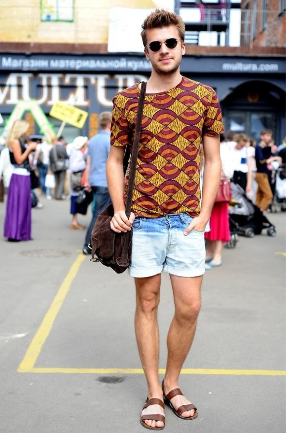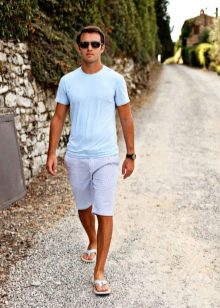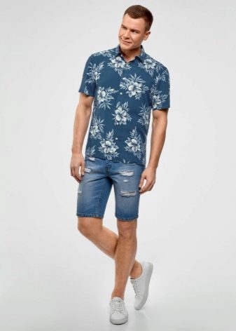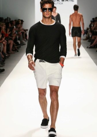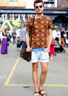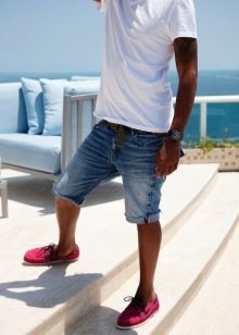 Дънкови шорти - най -популярният и практичен вариант за горещо време. Най -добре е да носите същите обувки с тях, които мъжете комбинират с дънки, а именно: всяко спортно облекло, мокасини, мокасини, топ-сайдери, слипони. В най -горещите дни сдвояването на модели, изрязани от деним с отворени мъжки обувки (сандали, мулета, чехли, джапанки) също се счита за доста подходящо.
