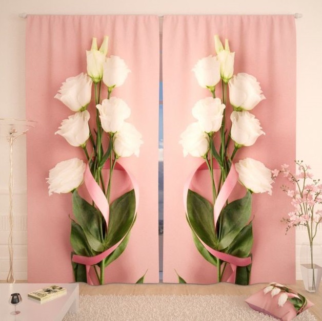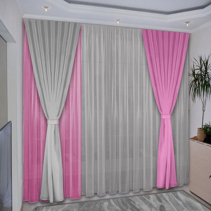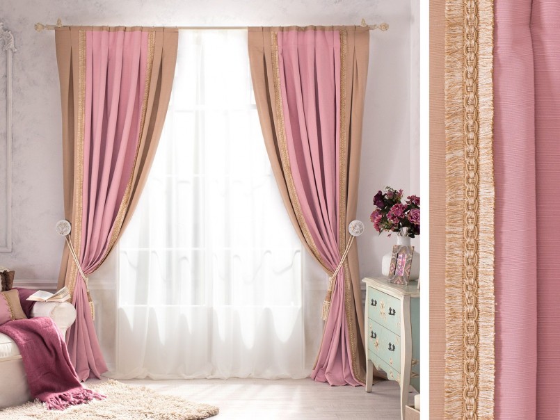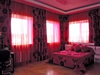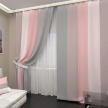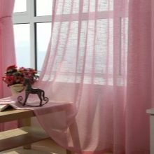Розовото често се включва в интериора, за да създаде определен антистрес ефект, да направи интериора визуално по-релаксиращ и успокояващ. Въпреки това, преди да закупите розови завеси, трябва да оцените цветовата схема на останалата част от интериора: покривала за дивани, стени, килими и други елементи на помещението. Такава оценка ще даде възможност да се избере правилния нюанс на новите завеси.В противен случай съществува голям риск новата придобивка да изглежда нехармонична в стаята и само да развали цялостния вид.