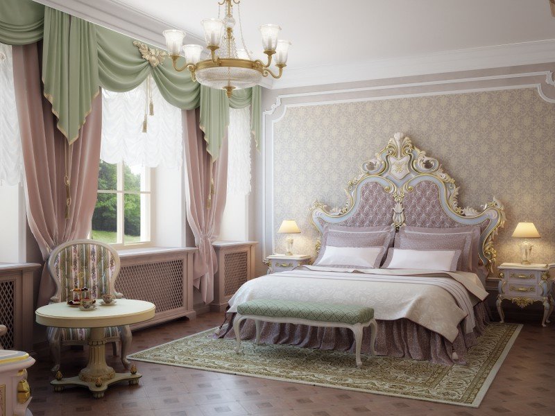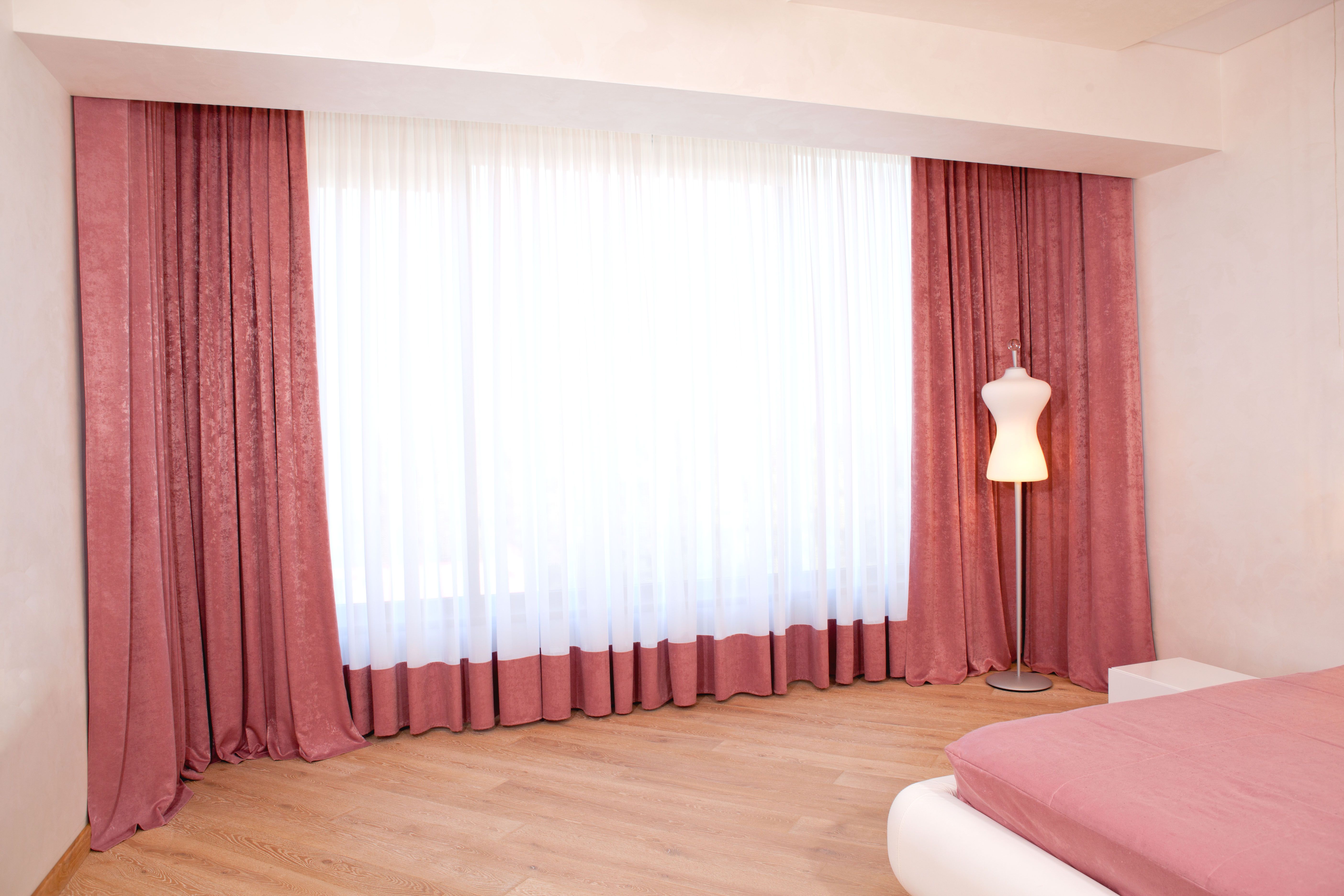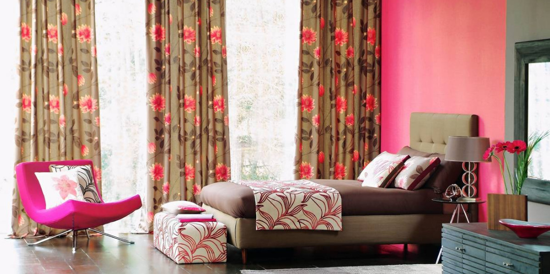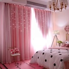 Розови завеси в интериора на спалнята