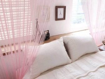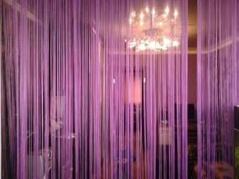 - Конец - това са завеси, които са направени от много дълги нишки. Такива модели изглеждат доста прости, но в същото време интересни. Те често могат да се използват за разделяне на пространство на отделни зони. Това е ефективна и стилна техника.