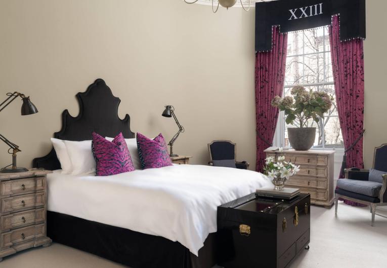 Розовото, особено ярко и богато, хармонизира добре с черното. Това е доста интересен вариант, който ще придаде на стаята нотка на дързост и енергия. В спалнята такъв тандем се използва с повишено внимание.