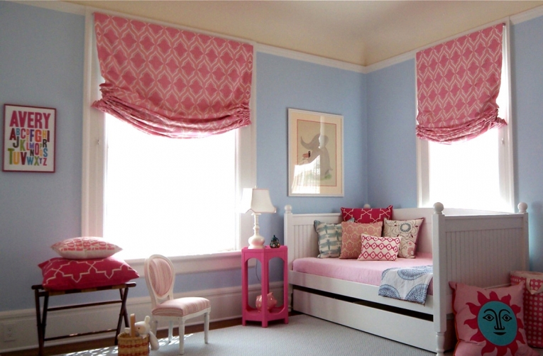 - Римски завеси. Благодарение на специален, прост механизъм, такива завеси могат да бъдат повдигнати, поради което тъканта им ще се събере в гънки.