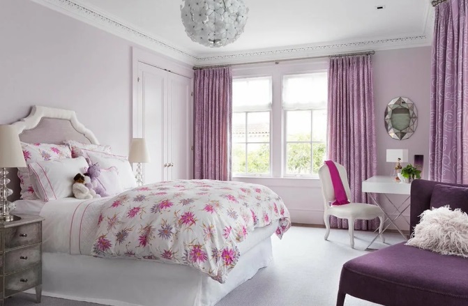 Студените нюанси, от друга страна, визуално понижават температурата. Тези нюанси включват прашна роза, орхидея, фуксия, както и мръсно розово с примеси от лилаво, люляково, сиво или лилаво. Най -често завесите от този цвят се използват за онези помещения, чиито прозорци са обърнати към слънчевата страна. Тези цветове придават нотка на свежест на интериора, което се усеща особено в жегата.