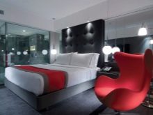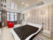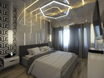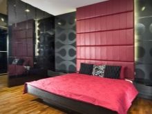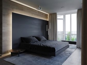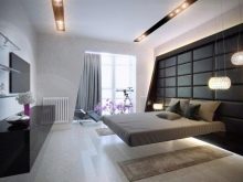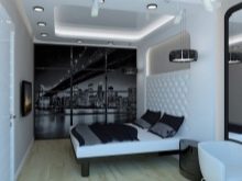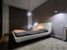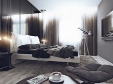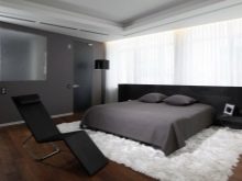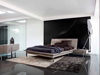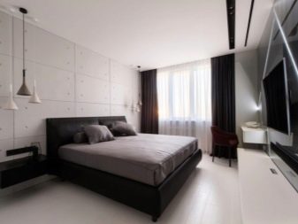 Модулен спален комплект... Въпреки строгостта на стила, мебелите остават меки. За да се впише в интериора, е по -добре да изберете правоъгълни кожени дивани или метални легла. Спалното бельо трябва да е съобразено със стила и в плътни цветове.