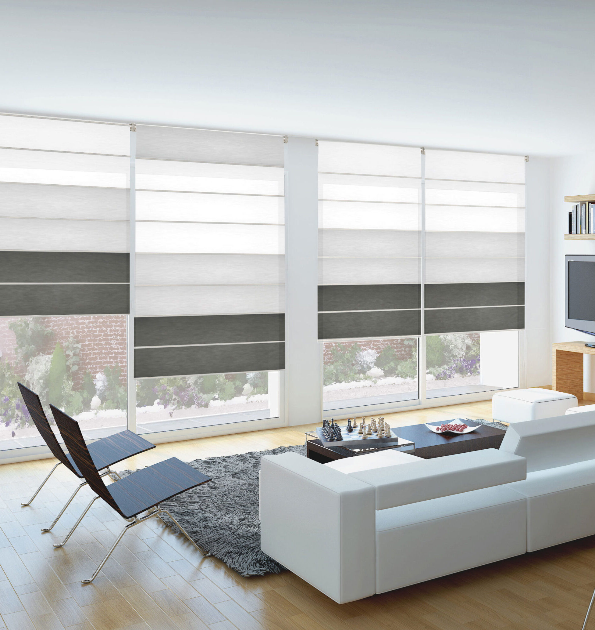Римски... Тези завеси не се различават много от предишния тип, съдържат малък брой гънки, които привличат вниманието, могат да се използват както с леки тъкани, така и отделно от тях.