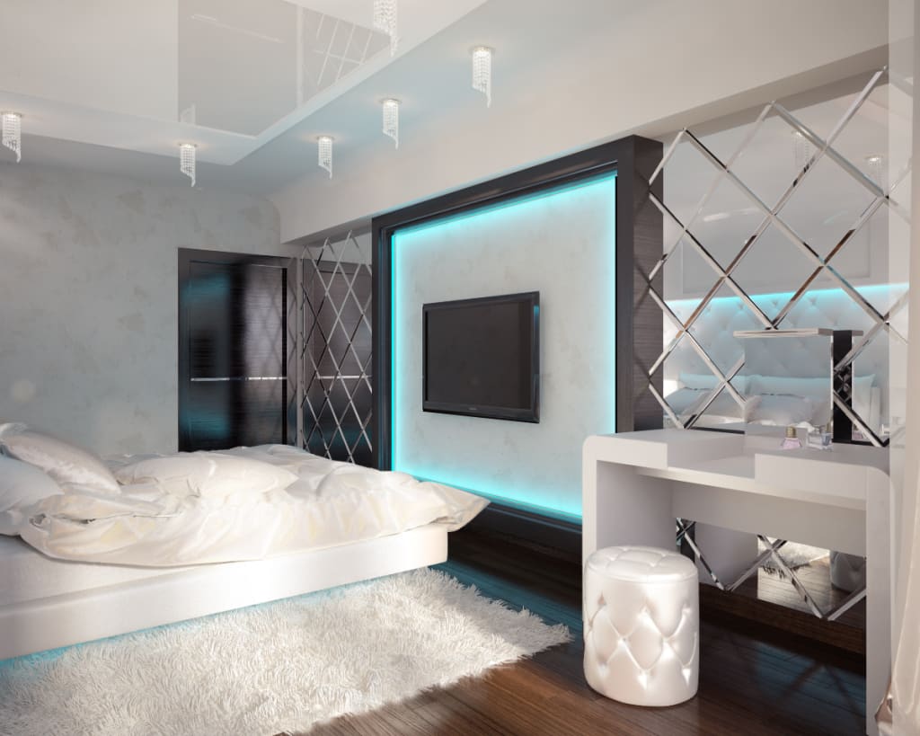 Не всеки ще хареса огледалното платно срещу леглото, но изглежда наистина вълшебно.