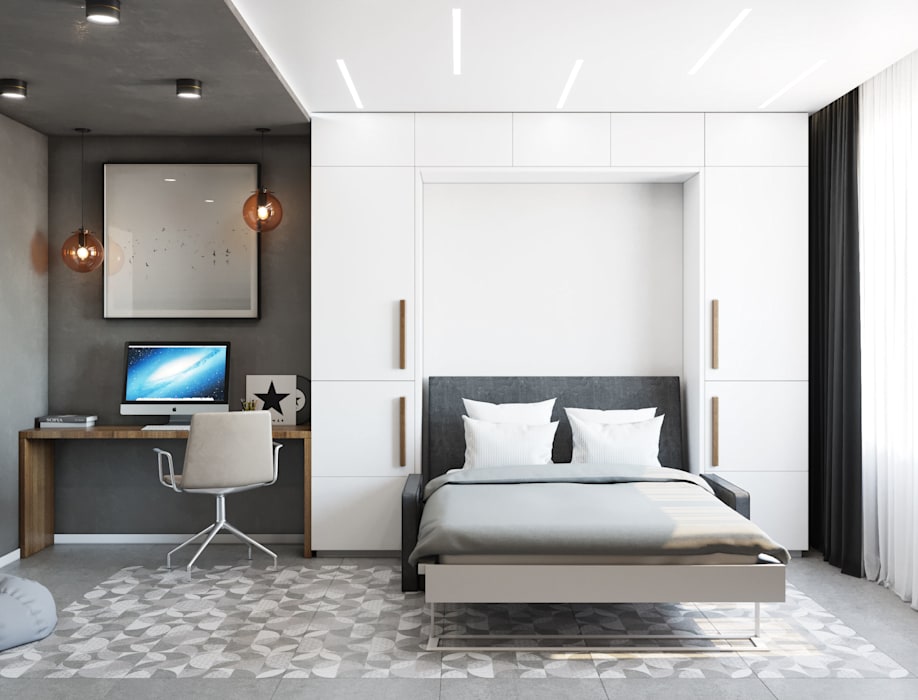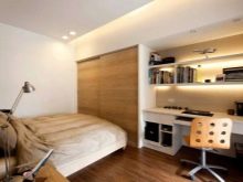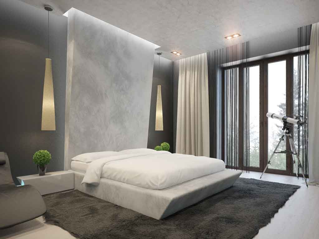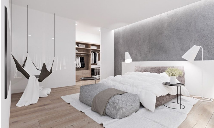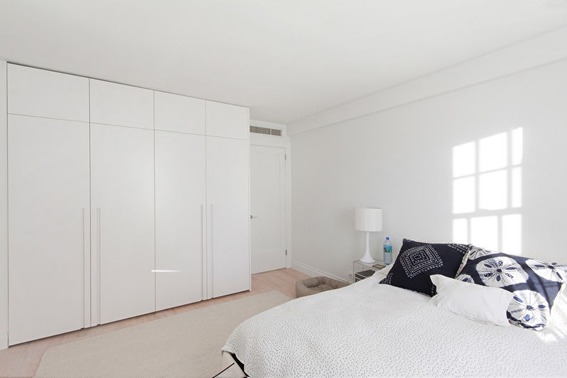 Спалните стаи, направени в минимализъм, се характеризират с прости форми, сдържани нюанси, многофункционално разпределение на пространството. Доста често този стил се използва за декориране на хола-спалнята.