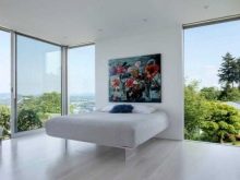 Ако разгледаме спалня в стила на минимализма, трябва незабавно да изоставите класическите тежки или многоетажни завеси. Оптималното решение са ролетни щори с тъмна подплата за надеждна защита от слънчевите лъчи. Ако наистина искате да украсите спалнята със завеси, тогава те трябва да бъдат направени от най -простата материя и без различни декоративни елементи.