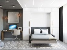 - за да се избегне задръстване на пространството в присъствието на шкаф, се препоръчва да се избират модели с монохромни фасади, допълнени с огледало или полупрозрачна пластмаса.
