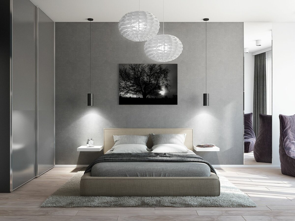 - Сив. Спалнята в сив цвят е спокойна, прохладна. За да създадете акценти в интериорния дизайн, трябва да обърнете внимание на тъмния графитен или черен цвят. За подробности можете да използвате огледала, сребро, хром и гланц.