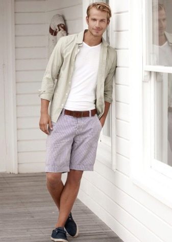 Този елемент от облеклото принадлежи към класическия стил. Най -често жилетка или яке се носят върху риза. В допълнение, те могат да имат различни цветове, както и свободно прилягане. В случай, че ризата има дълги ръкави, можете да носите дънкови панталони към нея. Продуктите с къс ръкав са подходящи за бричове или шорти. Ако мъж иска да изглежда по -спокоен, тогава ръбовете на ризата могат да бъдат завързани.