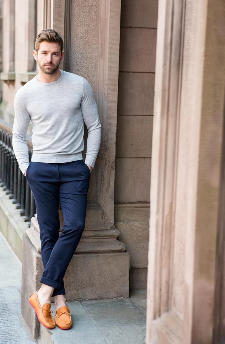 - Мокасини. Ако са изработени от кожа или други естествени материали, мокасините са идеални за лъкове със стилни панталони и якета. Мокасините са универсални обувки, които подхождат дори на високопоставени мъже. Можете да ги носите удобно през целия ден.