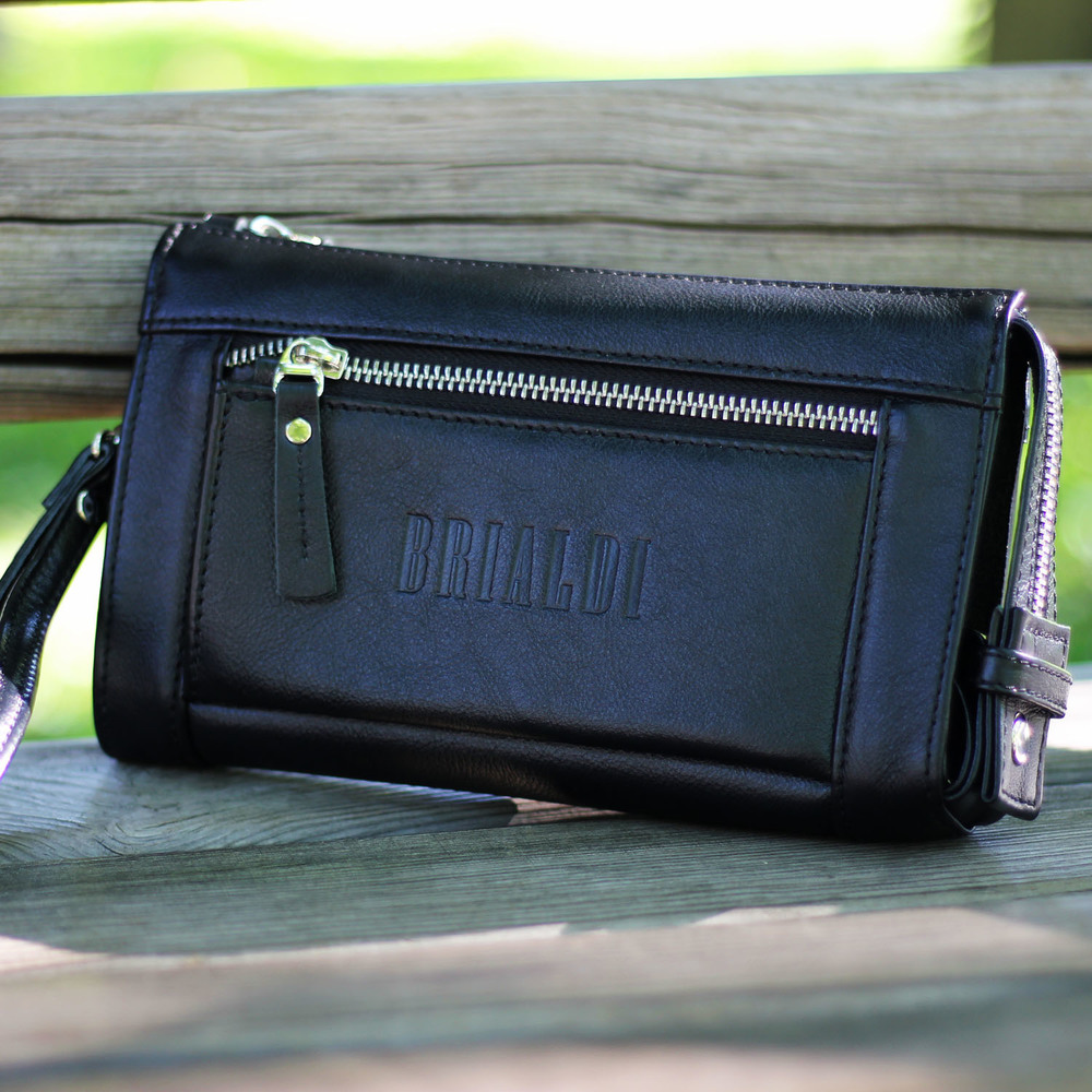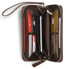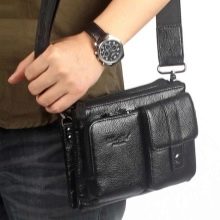 Тази компактна версия на мъжка чанта с един цип и допълнителни джобове отпред и отзад на продукта успешно замества обикновен портфейл или куфарче. Вътре има няколко отделения за пари, документи, карти.