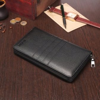 - Надеждност на съхранението. Естествена кожа с добра изработка, специални вложки за поддържане на формата, голям брой закопчалки (от основния цип до допълнителни копчета) ви позволяват да защитите собствеността си от посегателства отвън.