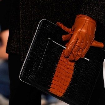 - Модни тенденции. Те съществуват и в света на мъжки аксесоари. За да се избегнат възможни грешки, си струва да се проучат предварително тенденциите - те обикновено се проявяват в избора на текстура, материал, цветова схема. Когато искате да закупите вечен артикул, по -добре е веднага да дадете предпочитание на чанта с клач с класически дизайн.
