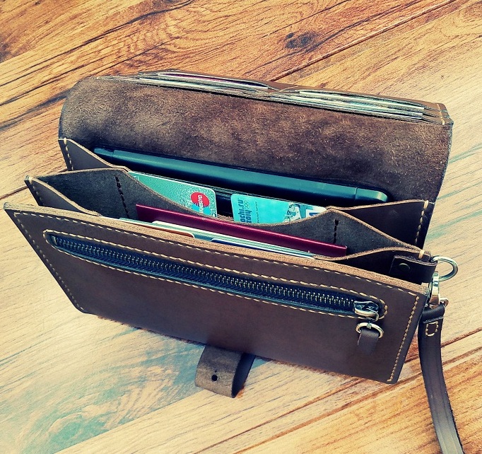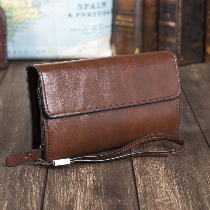 Компактен и сложен вариант. Винаги е изработен от кожа на ръка, има щамповане, затваря се с копче като портфейл. Класическият съединител трябва да има притежател на визитка или мини-органайзер с тефтер, отделение за карти и пари в брой. Този аксесоар е прикрепен към колан на талията, на ръка или носен през рамо.