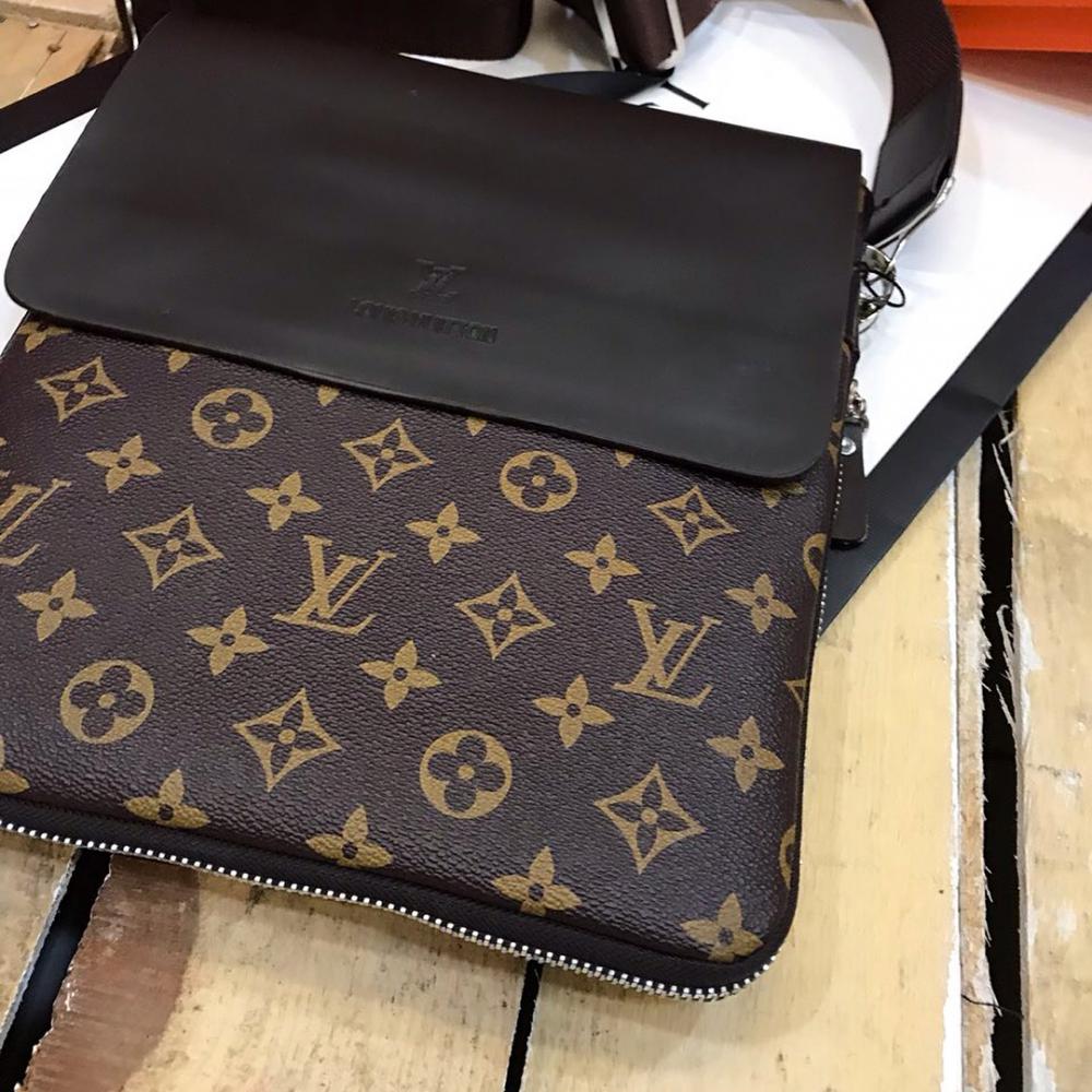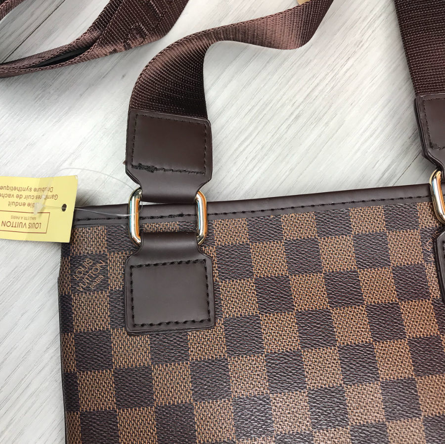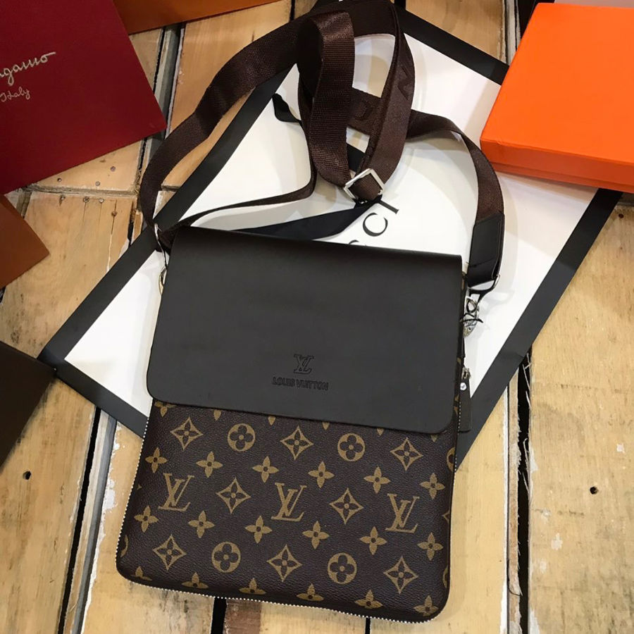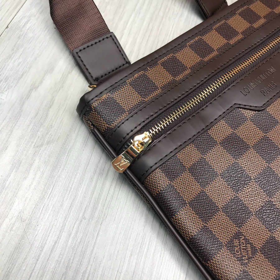 Мъжки чанти Louis Vuitton са произведени в подписана кафява текстурирана кожа с монограмирани LV преплитащи се букви. Материалът е с отлична изработка, внимателно подбран за всяка партида стоки.