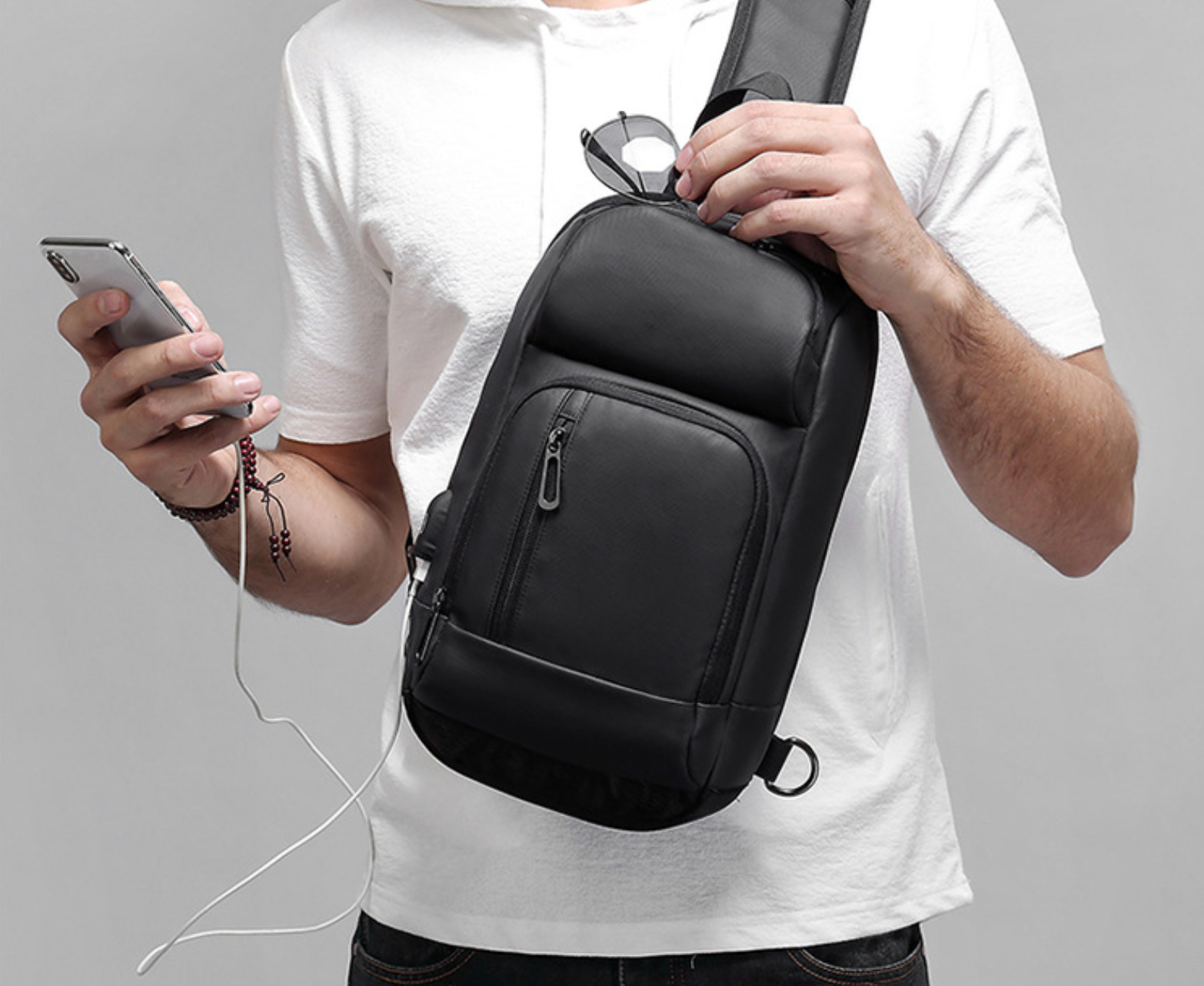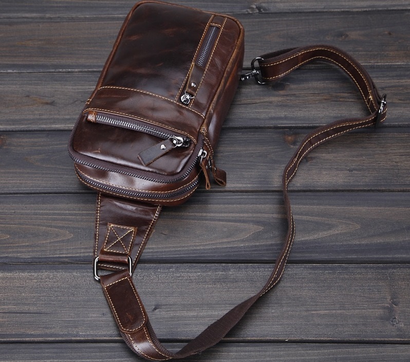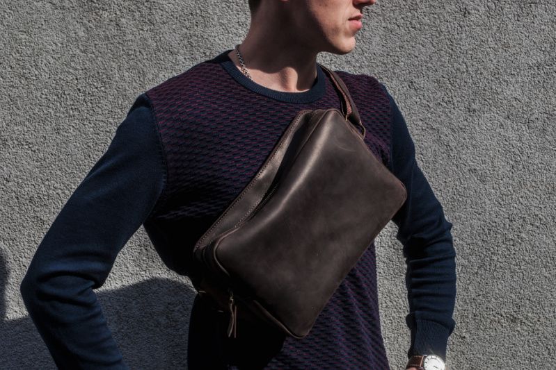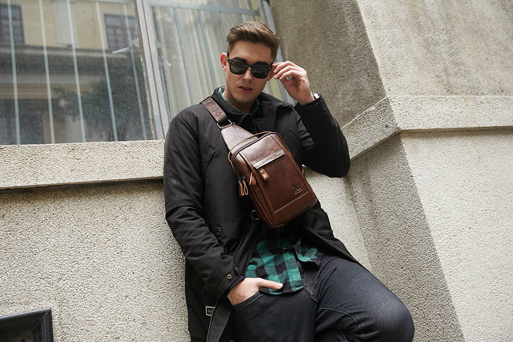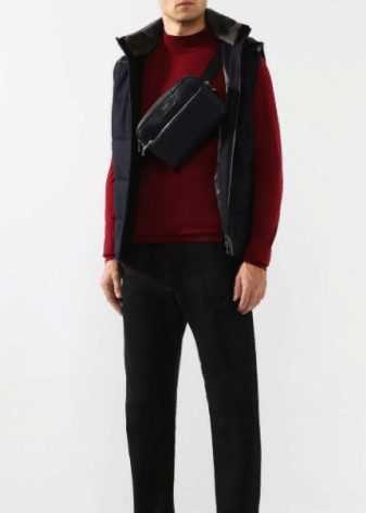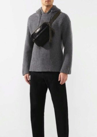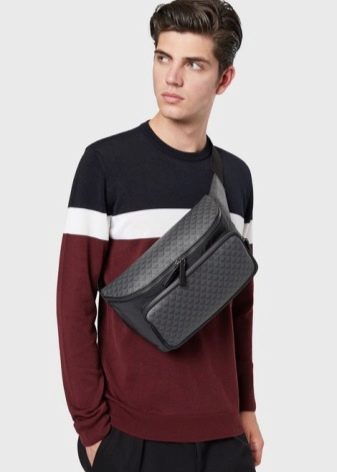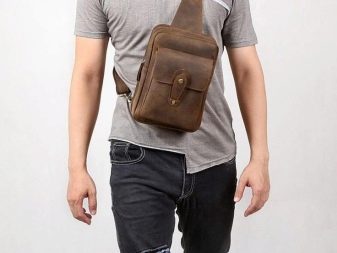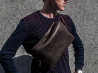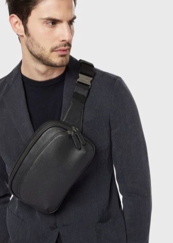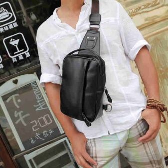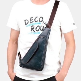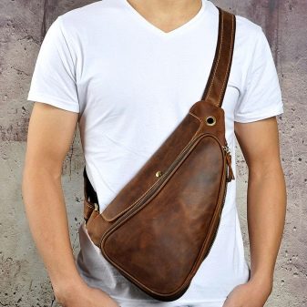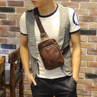 Чантите през рамо са също толкова удобни, колкото чантите с жилетки и също могат да побират голямо количество предмети. Изработени са от естествена кожа, висококачествена изкуствена кожа, полиестер. Кожените чанти през рамо изглеждат по -официални от моделите от полиестер, така че най -често те са аксесоар за бизнес човек. Кожените изделия подчертават индивидуалността и отразяват максималния лаконизъм на изображението. Моделите от полиестер се използват главно за младежки и спортни стилове. Той е много популярен сред мъжете модел на гърдите "Пощальон".