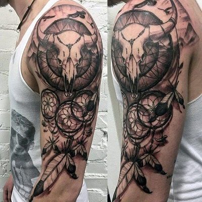 Татуировка под формата на ловец на мечти за мъже (както и за жени) означава, на първо място, защита. Символът принадлежи към културата на древните индийски племена, населявали Северна Америка. За тях това нещо беше талисман срещу силите на злото, затова този образ беше приложен върху тялото, за да се защитят. В наше време значението на ловец на мечти остава същото.