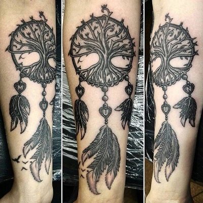 - Дървото вътре в пръстена на Ловец на мечти ще разкаже не само за връзката с природата, но и за единството на духовното и физическото, които са хармонично съчетани в собственика на тази татуировка.