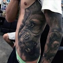 - Универсалност... Татуировка, разположена от мъжката страна, може да стане част от по -обемна шарка. Ръбовете на изображението могат да бъдат върху корема, гърба или краката. Ето защо тази опция е идеална за хора, които искат да украсят тялото си с големи и замислени картини.