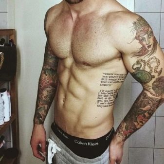 Страничните татуировки на мъжете преди не бяха много популярни. Дълго време мъжете предпочитаха да попълват рисунки на ръцете, гърба или стомаха си. Такива татуировки винаги са привличали вниманието и биха могли да разкажат много за техните собственици. Но през последните няколко десетилетия се появиха много интересни скици, които могат да бъдат пълнени отстрани.