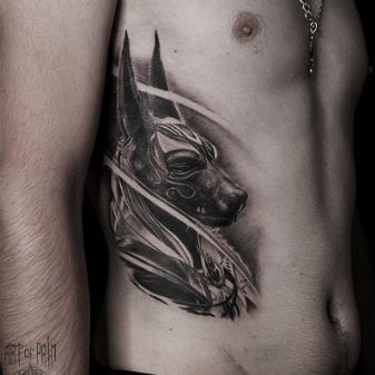 - Митични герои. Любителите на символичните татуировки трябва да обърнат внимание на скици с герои от различни митове. Отстрани можете да натъпчете луксозен скандинавски воин или египетски пътеводител по света на мъртвите. Татуировки като тези могат да разкажат много за техните собственици.