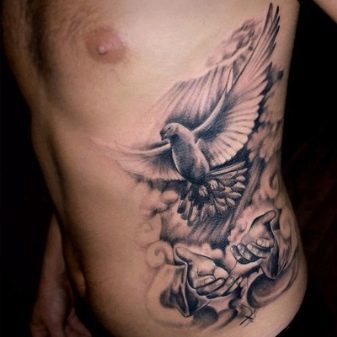- Птици... По правило птиците служат като символ на свободата. Най -често върху тялото са натъпкани изображения на гарвани и орли. Татуировки с гълъби също са популярни.Такива татуировки често се избират от религиозни хора. Обикновено такива рисунки допълват изображенията на броеници, кръстове или сгънати ръце в молитва. Хората обикновено придават специално значение на тези носими дизайни.