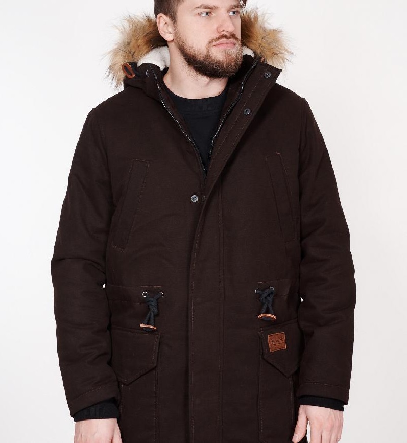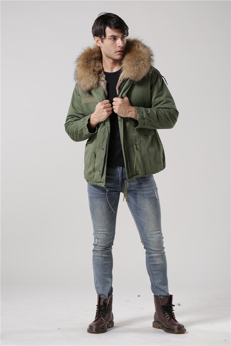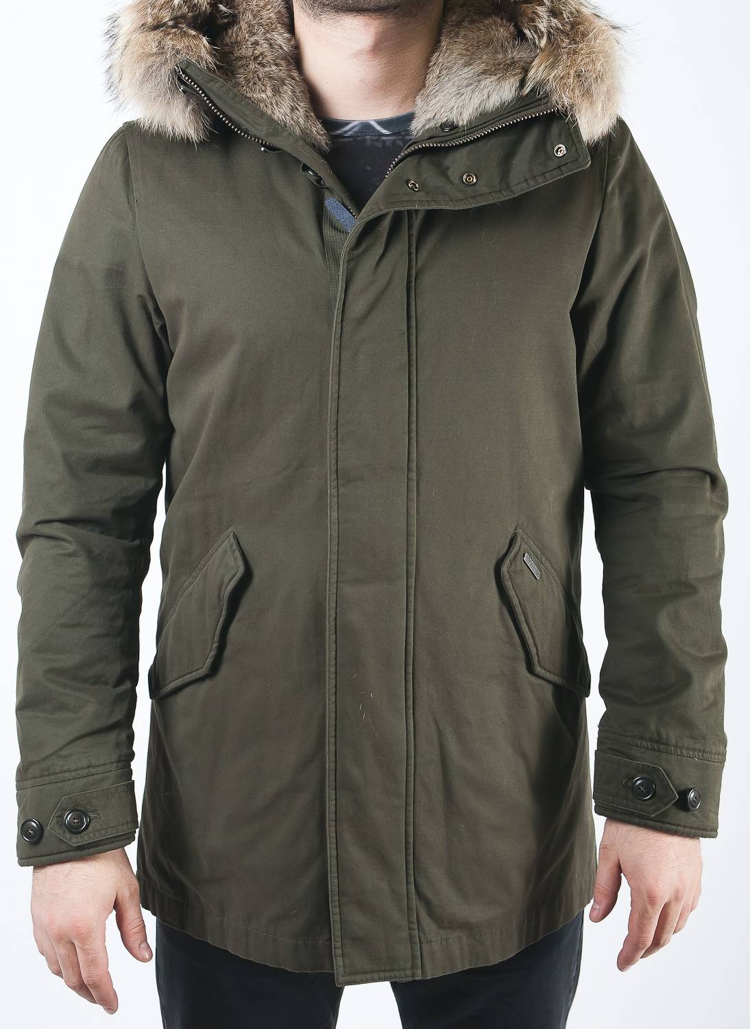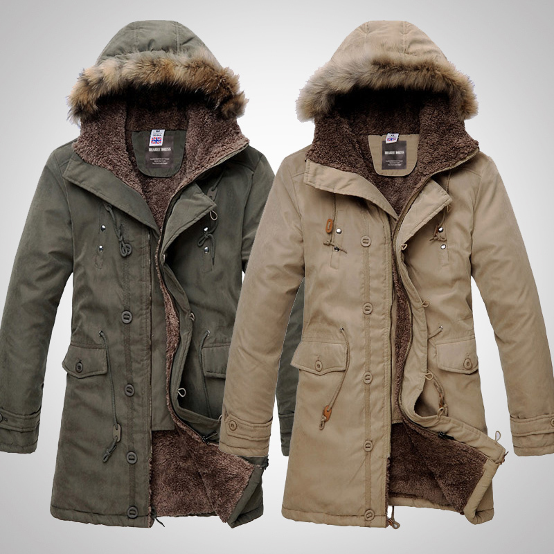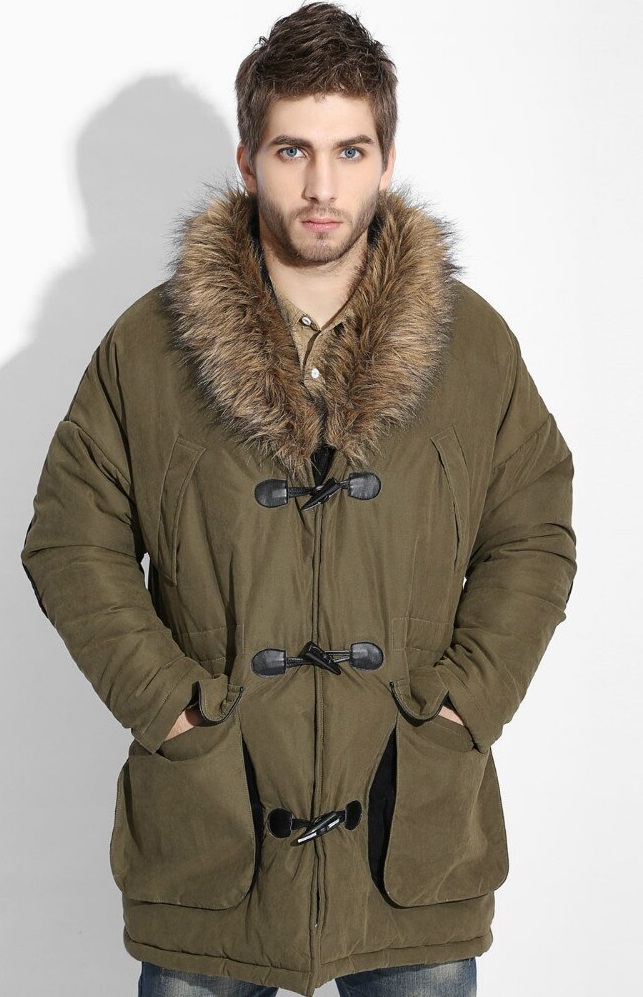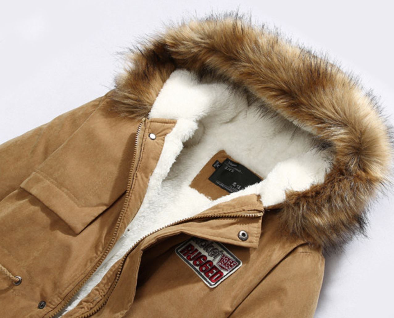 За да се предпазите максимално, на главата се поставя качулка с козина... Заслужава да се отбележи, че тенденцията на козината в декоративния дизайн добави специална индивидуалност към парковете. Тапицерията на качулката е изработена от вълча кожа, койот, миеща мечка или козина от лисица. Кожена яка позволява на мъжа не само да добави чар към изображението, но и да се затопли при минусови температури. В същото време модата за пухкава козина по никакъв начин не повлия на използването на изрязани вълнени дрехи, сред които заешката кожа е много популярна.