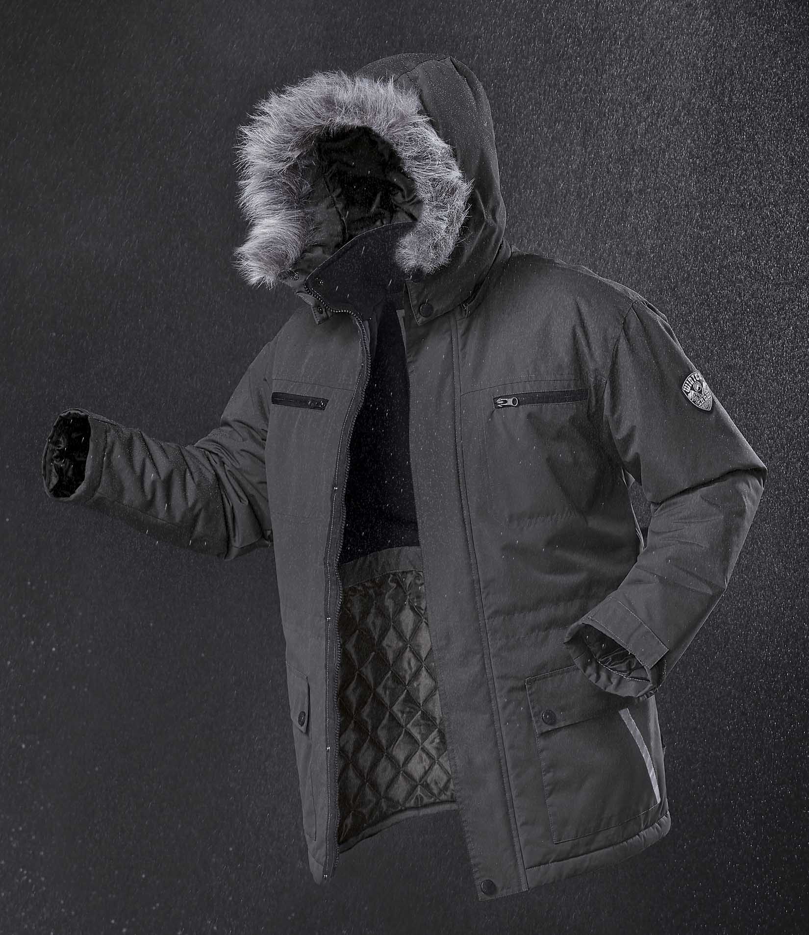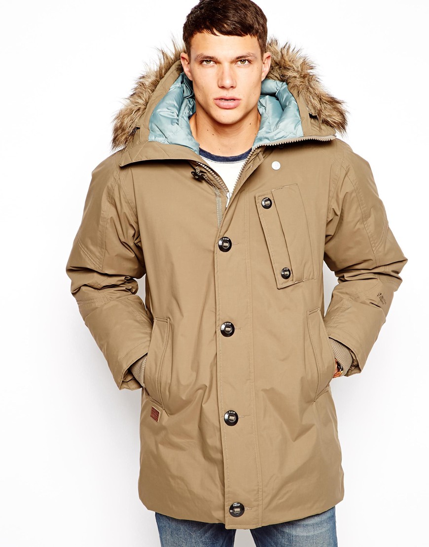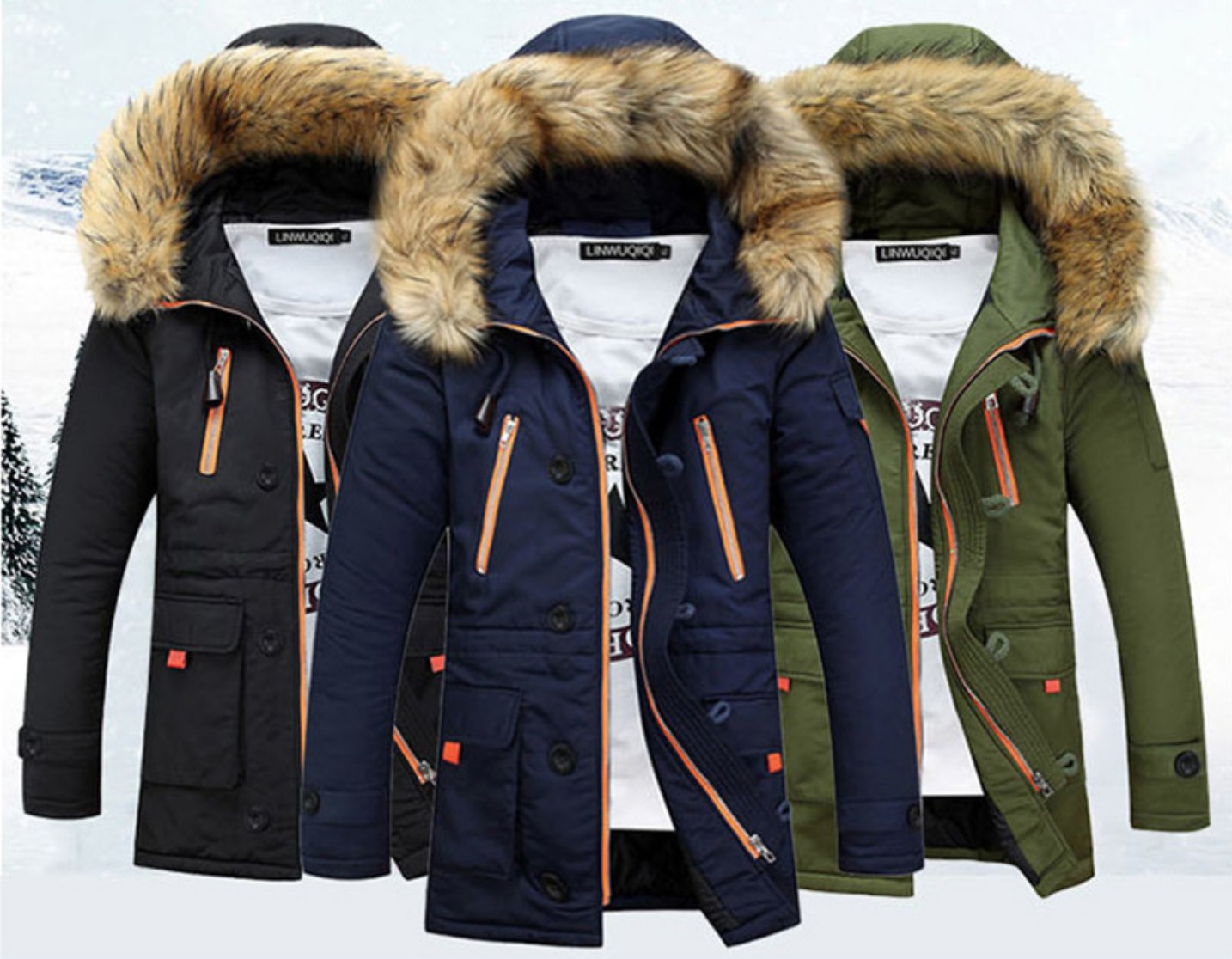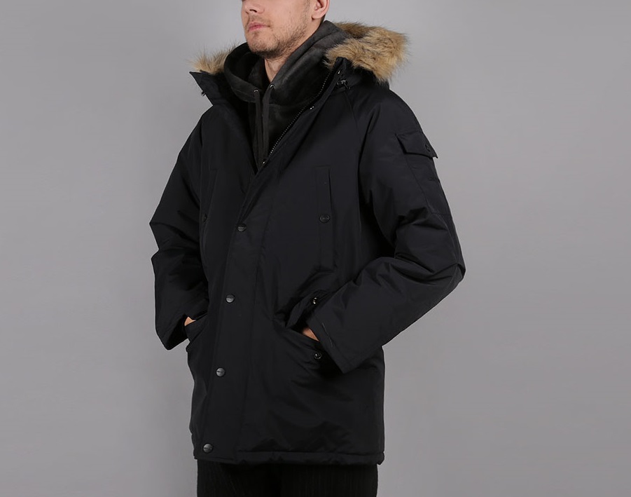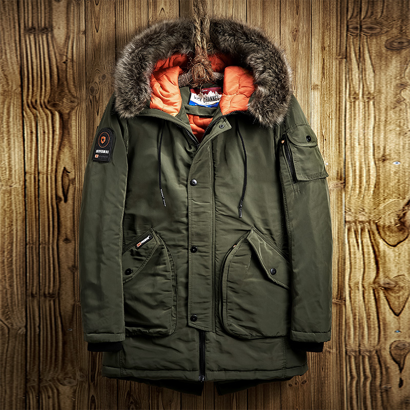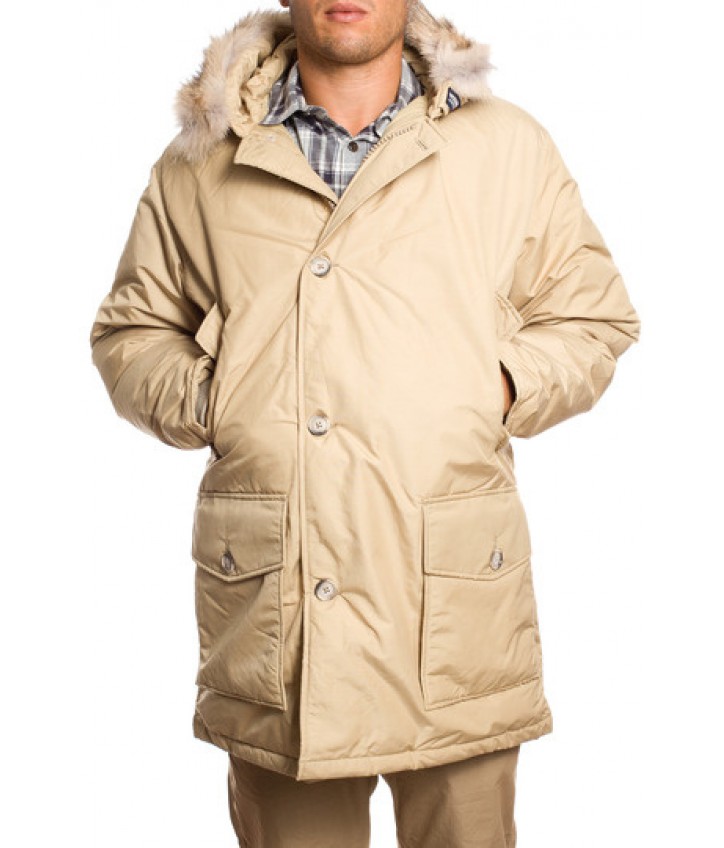 За да се предпазите максимално, на главата се поставя качулка с козина... Заслужава да се отбележи, че тенденцията на козината в декоративния дизайн добави специална индивидуалност към парковете. Тапицерията на качулката е изработена от вълча кожа, койот, миеща мечка или козина от лисица. Кожена яка позволява на мъжа не само да добави чар към изображението, но и да се затопли при минусови температури. В същото време модата за пухкава козина по никакъв начин не повлия на използването на изрязани вълнени дрехи, сред които заешката кожа е много популярна.