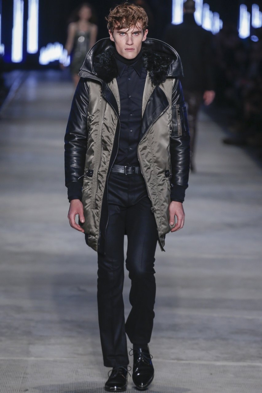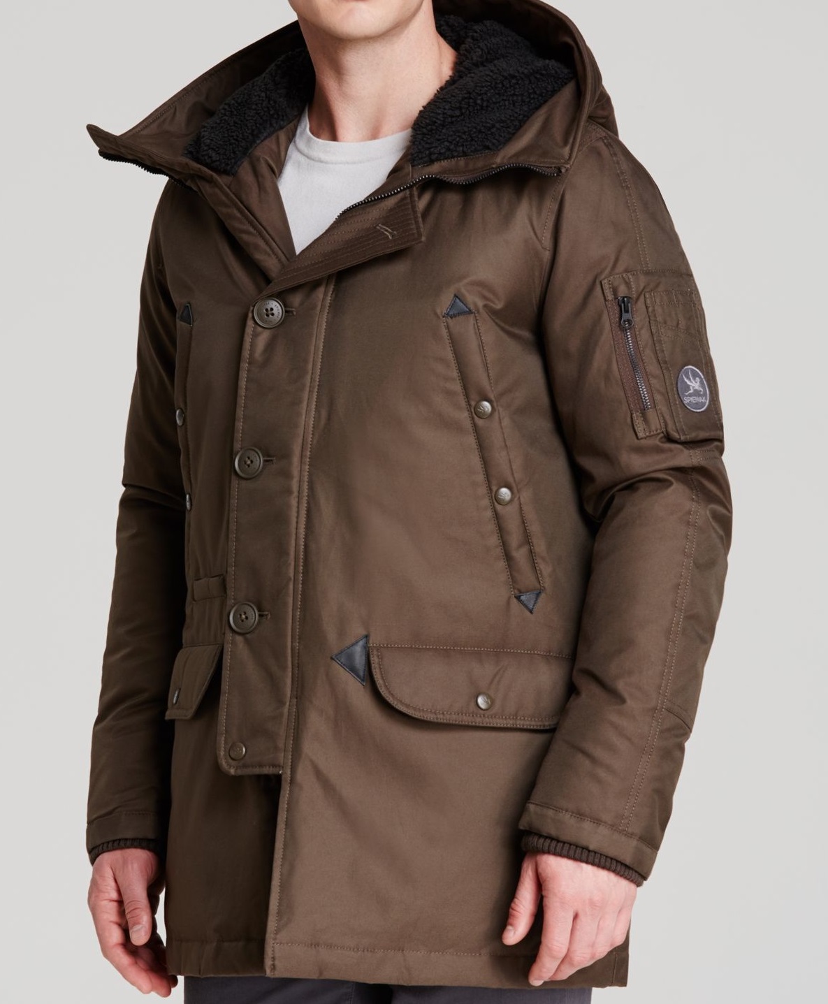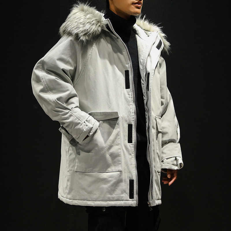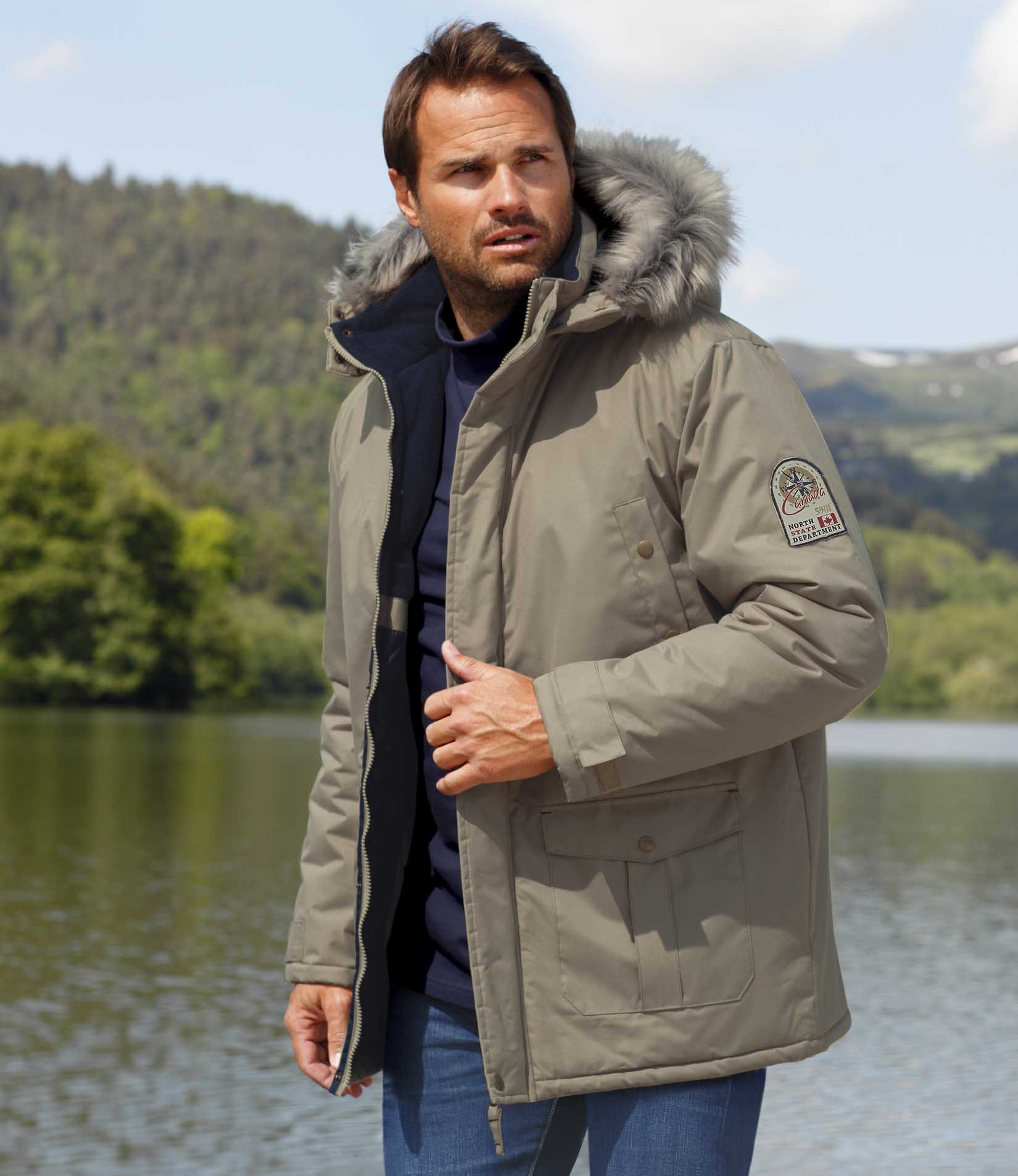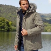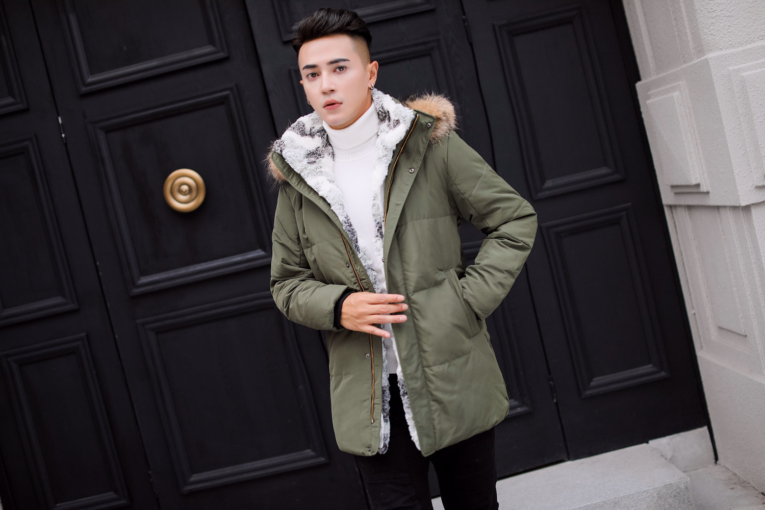 За да се предпазите максимално, на главата се поставя качулка с козина... Заслужава да се отбележи, че тенденцията на козината в декоративния дизайн добави специална индивидуалност към парковете. Тапицерията на качулката е изработена от вълча кожа, койот, миеща мечка или козина от лисица. Кожена яка позволява на мъжа не само да добави чар към изображението, но и да се затопли при минусови температури. В същото време модата за пухкава козина по никакъв начин не повлия на използването на изрязани вълнени дрехи, сред които заешката кожа е много популярна.
